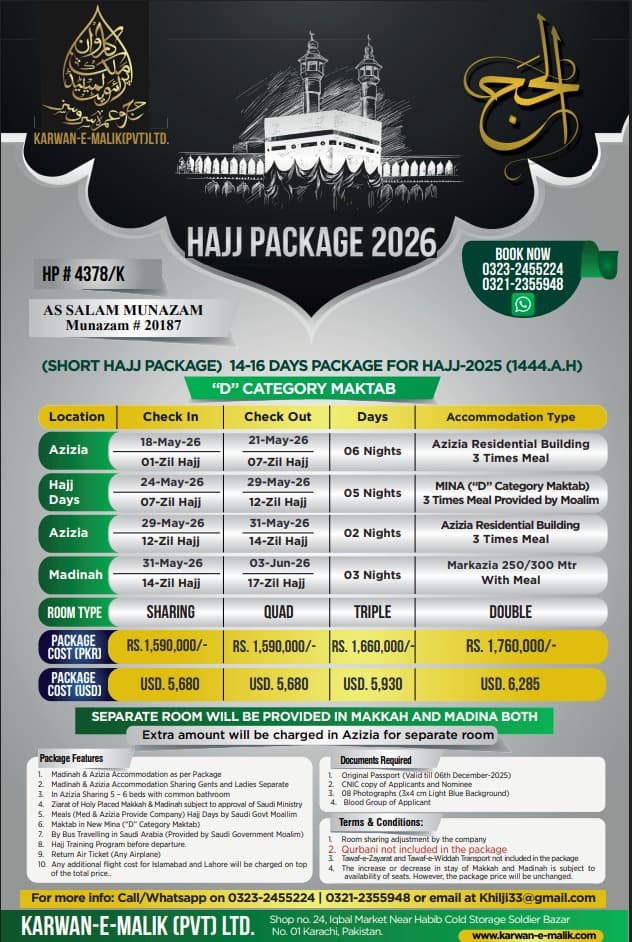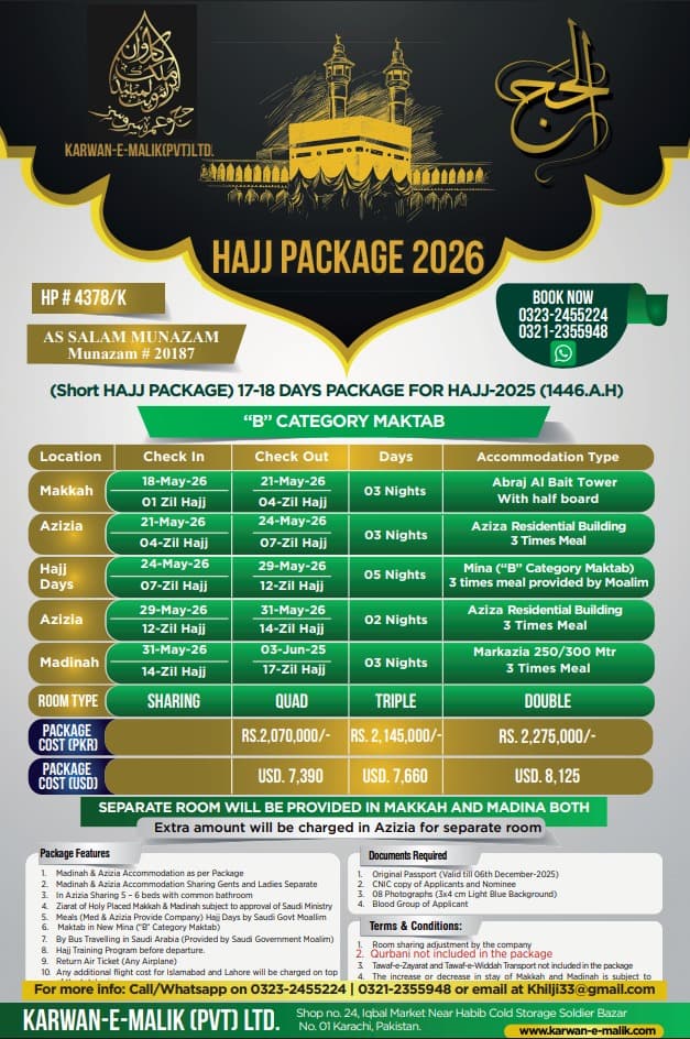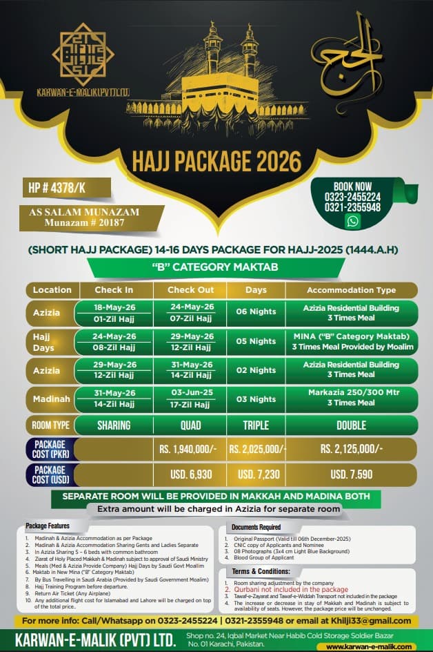 Pilgrims from Karwan Malik Private Limited are leaving the Medina Hotel to visit holy places.